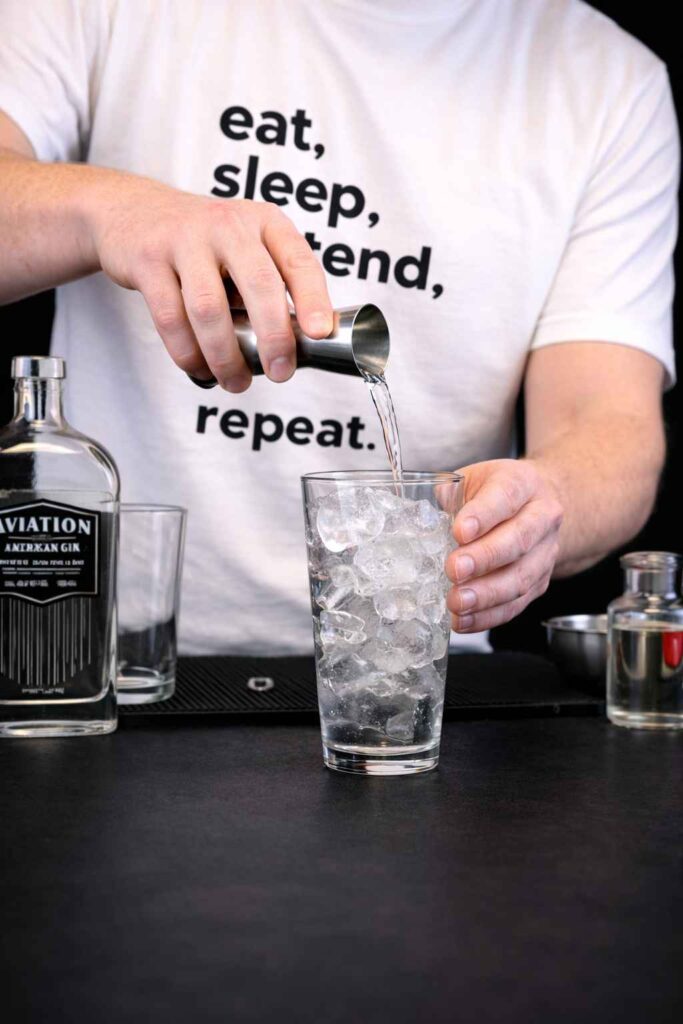 4. Shake: To ensure a secure seal, securely place the Boston tin over the Boston glass. Shake both parts vigorously for approximately 10-15 seconds while maintaining a secure grip. This chills the beverage and ensures that all ingredients are correctly incorporated, while simultaneously infusing the mint flavor.