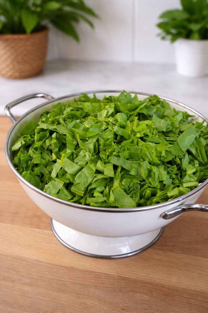 • 1 large bunch fresh spinach, thoroughly washed and finely shredded