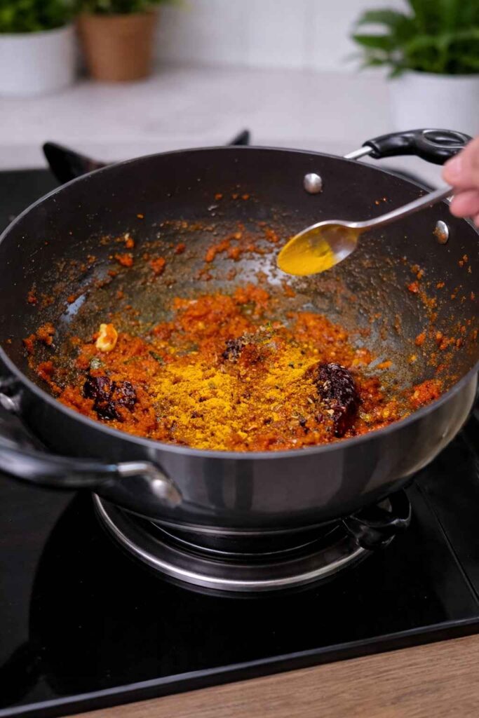Important: Do not add water. The onions naturally release moisture, which helps form the paste. Adding water will make the mixture take longer to cook down.