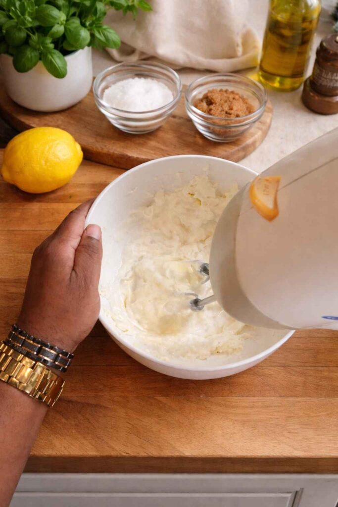 Remove your cream cheese from the refrigerator at least 30 to 45 minutes before you plan to make the filling and allow it to come fully to room temperature. This is not merely a convenience step — cold cream cheese contains fat in a semi-crystalline state that resists smooth incorporation and creates small, stubborn lumps in the finished filling that no amount of mixing will fully eliminate. Room-temperature cream cheese has fat in a fluid, plastic state that beats smoothly and evenly. In a large mixing bowl, use a hand mixer on medium-high speed to beat the softened cream cheese alone for about 60 to 90 seconds until it is completely smooth, lump-free, and slightly fluffy. Add the powdered sugar and beat again on medium speed for another 30 seconds. Add the instant cheesecake pudding mix and beat until fully incorporated. Add the teaspoon of pure vanilla extract, then squeeze in the juice of half a lemon directly into the bowl, catching any seeds with your other hand. Beat briefly to combine all these ingredients into a uniform mixture. The filling at this point should be dense, very smooth, and pleasantly tangy from the lemon and cream cheese combination.
