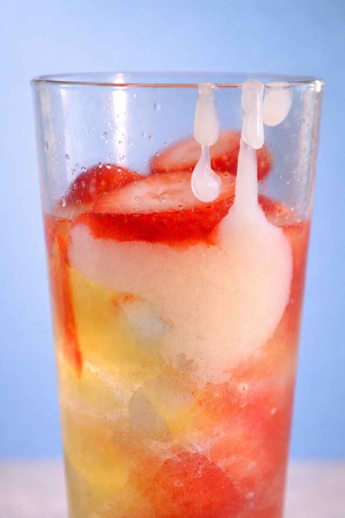 - 2 to 3 fresh strawberry slices fanned on the rim
