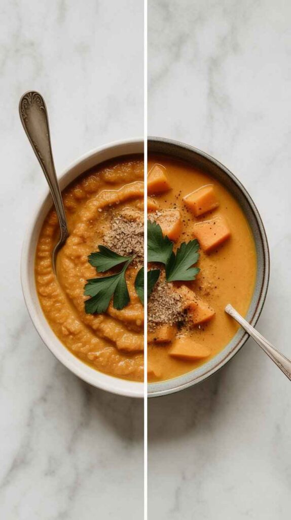 Should I roast the sweet potatoes before adding them to the soup? Roasting is optional but genuinely worthwhile if you have the extra time. Pre-roasting the sweet potatoes in a hot oven with a drizzle of oil and a pinch of salt creates a layer of caramelized, concentrated sweetness that raw potatoes cannot achieve. It adds approximately 25 minutes to the total preparation time but creates a noticeably more complex and deeply flavored finished soup.