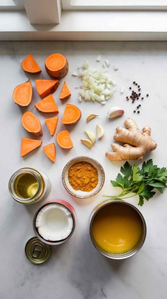 This Sweet Potato Coconut Curry Soup is the kind of recipe that feels like it was made for cold evenings and tired afternoons — the sort of meal that warms you from the inside out, fills the whole house with an incredible aroma while it cooks, and delivers genuine nourishment alongside pure, unapologetic comfort. What makes it so special is the way every ingredient plays its part: sweet potatoes bring a natural earthiness and starchy body that blends into an almost impossibly silky texture, fresh ginger adds brightness and zesty heat, garlic and onion build a deep aromatic foundation, curry powder weaves warmth and complexity throughout, and full-fat coconut milk, stirred in right at the end, transforms everything into something luxuriously creamy, rich, and deeply satisfying — all without a drop of dairy and all in under 45 minutes.