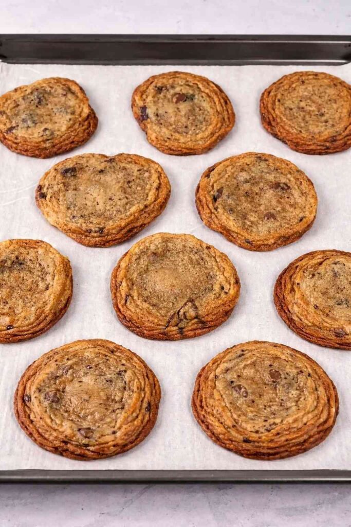 - Bake: Preheat your oven to 350°F (175°C). Scoop 1.5-tablespoon portions onto a parchment-lined sheet. Bake for 9–12 minutes until the edges are fairly dark.