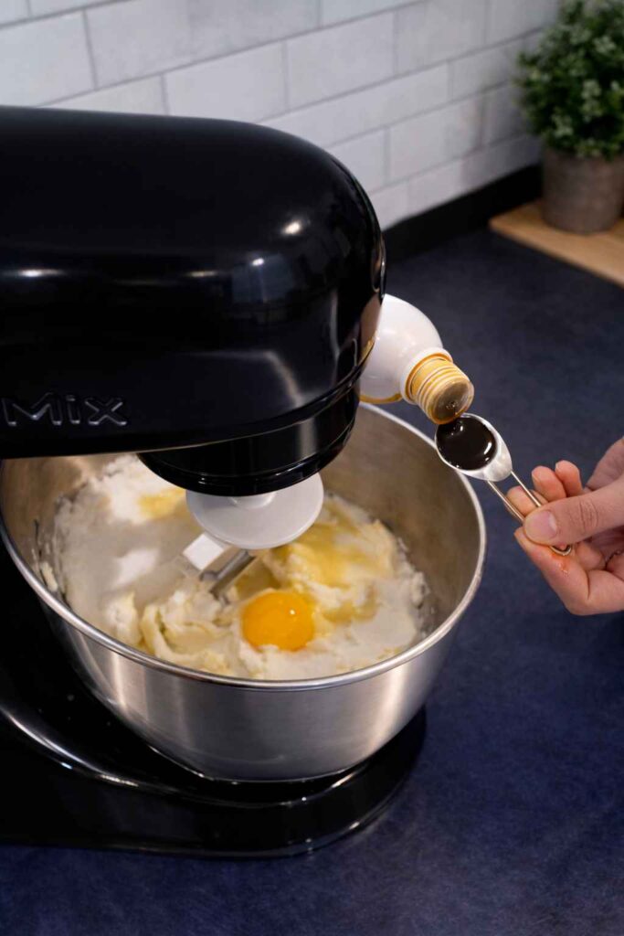 - Add Egg and Vanilla: Crack in one large free-range egg and add one teaspoon of vanilla extract. Beat for another 2 minutes until well combined.