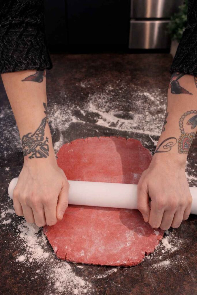 - Roll Out Dough: Lightly dust your work surface and rolling pin with extra flour. Take one disc of chilled dough and roll it out until it is about 4mm thick.