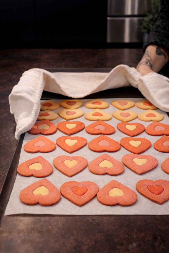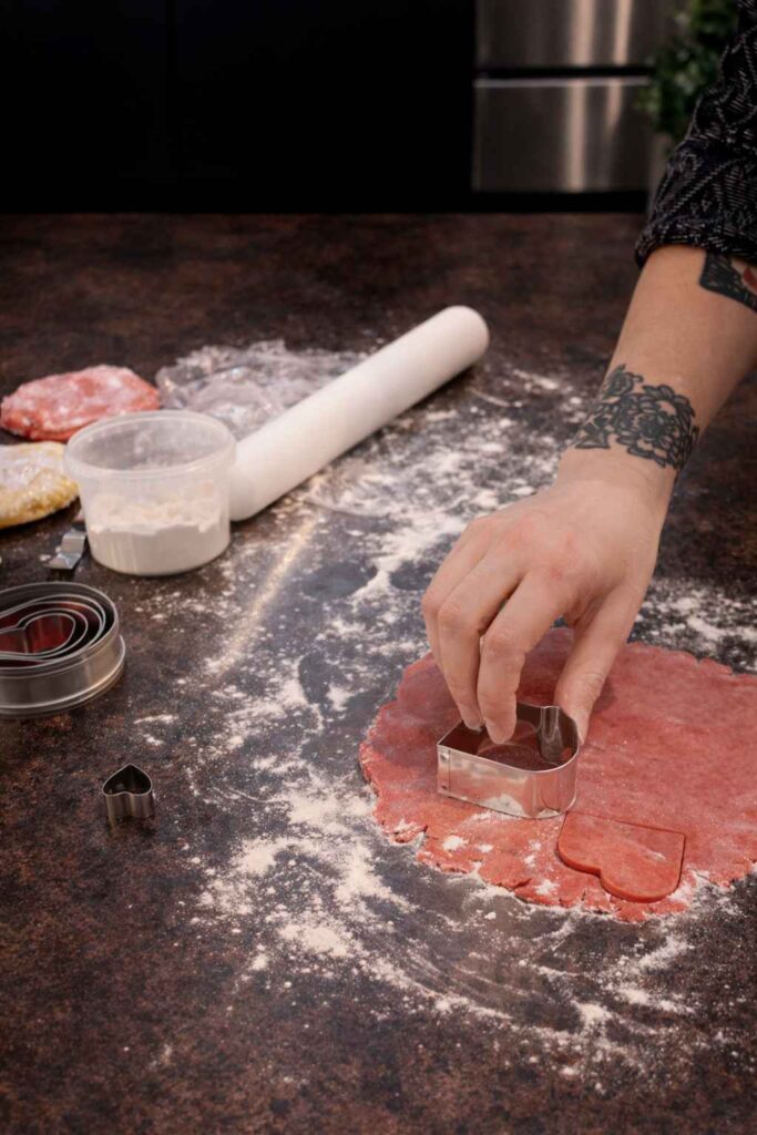 - Cut Heart Shapes: Using a set of heart cookie cutters, start with a larger cutter to cut out as many big heart shapes as possible from the rolled dough. Then, use a smaller heart cutter to cut out the middle of each large heart.