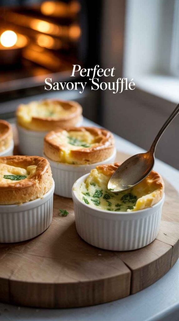 Make the base in advance if you need to manage the timing. Prepare your ramekins carefully. Whip your whites properly. Fold gently and confidently. Then set your table, pour something cold and white into a glass, and pull from your oven four of the most satisfying, beautiful things your kitchen has ever produced. Serve immediately, eat without hesitation, and enjoy the considerable satisfaction of having done something that everyone assumed was beyond them — and made it look completely effortless.