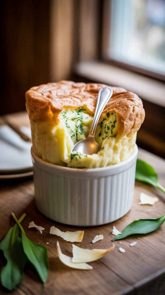 A small amount of good quality white truffle oil drizzled into the béchamel base after it comes off the heat — or a few shavings of actual truffle folded through — creates something truly extraordinary. Truffle and Comté is one of the most celebrated flavor pairings in French and Italian fine dining, and in a soufflé the combination is genuinely spectacular. Use truffle oil with a very light hand — it is powerful and a little goes a very long way.