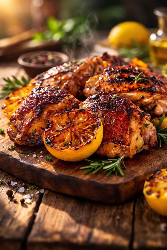 Pair these thighs with a crisp green salad dressed with nothing more than the same olive oil and lemon used in the marinade, or with roasted potatoes whose browning echoes the grill’s own Maillard character, or with light couscous that absorbs the chicken’s resting juices when plated alongside. In any configuration, at any occasion from a weeknight family dinner to a summer backyard gathering, these chicken thighs deliver the specific pleasure of outdoor cooking at its most honest and most accomplished.